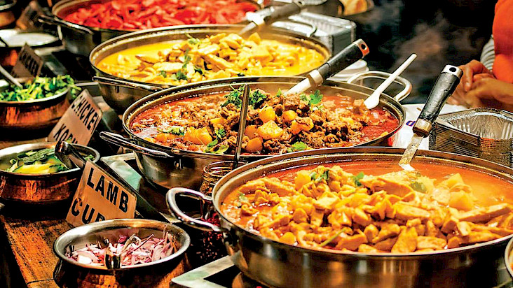 At a Pakistani wedding you can only expect dishes to be made from halal meat. And at Mazaa our meat is HMC with 100% halal dishes. The Pakistani cuisine is known for its rich flavours with delicious dishes such as sumptuous tikka, kebabs and street-style food counters. Delicious chicken yakhni biryani, astounding nihari gosht or haleem is served with naan bread or ghee rice. And not forgetting tasty desserts including the traditional gajar ka halwa, Kheer and
